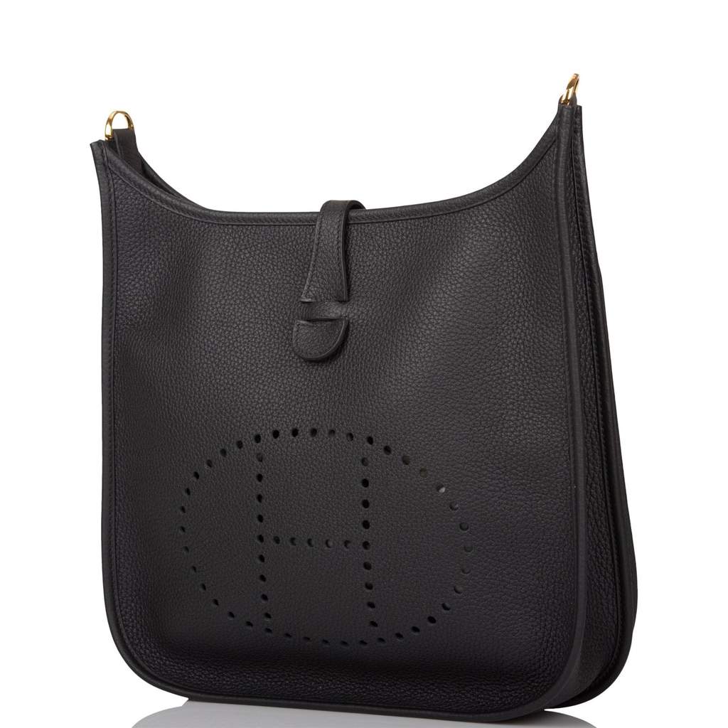 [New] Hermès Black Clemence Evelyne III PM Bag Gold Hardware