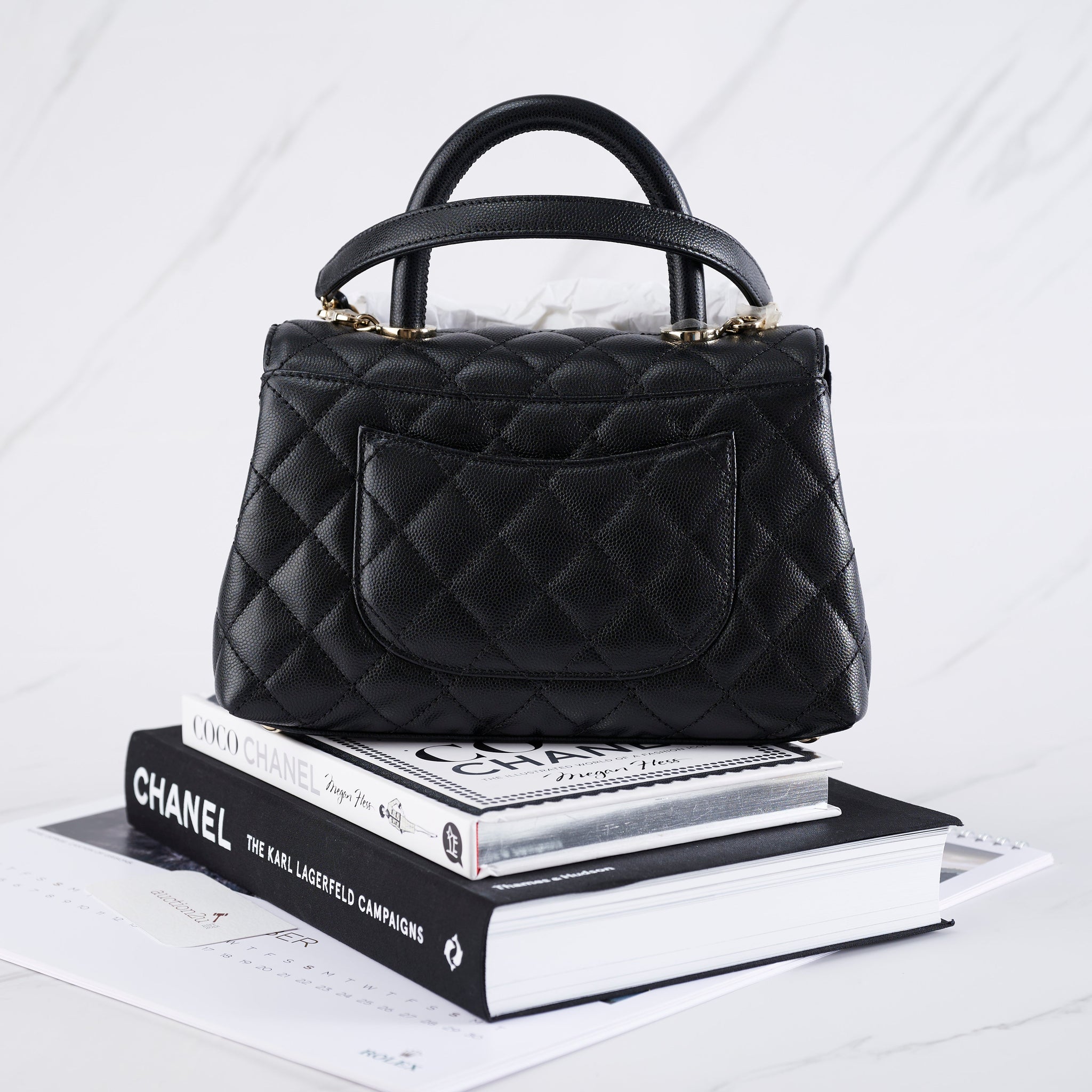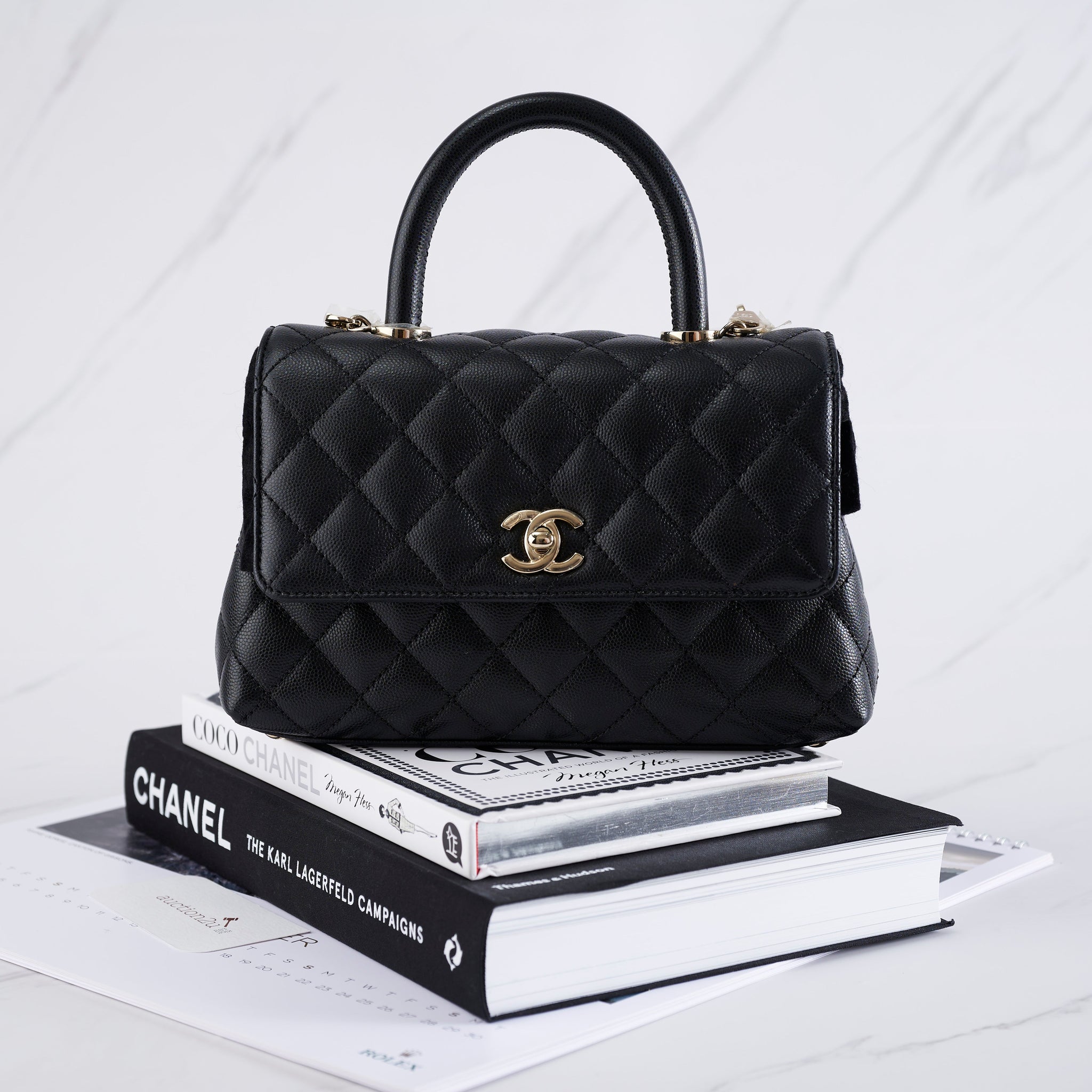 [NEW] Chanel Flap Bag With Top Handle (Small Coco Handle) | Grained Calfskin Black & Gold-Tone Metal