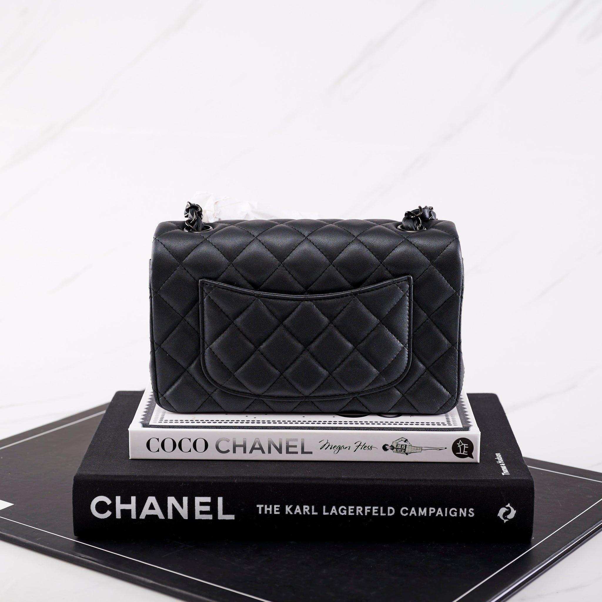 [NEW] Chanel Mini Rectangular Flap Bag | Lambskin So Black & Black Metal