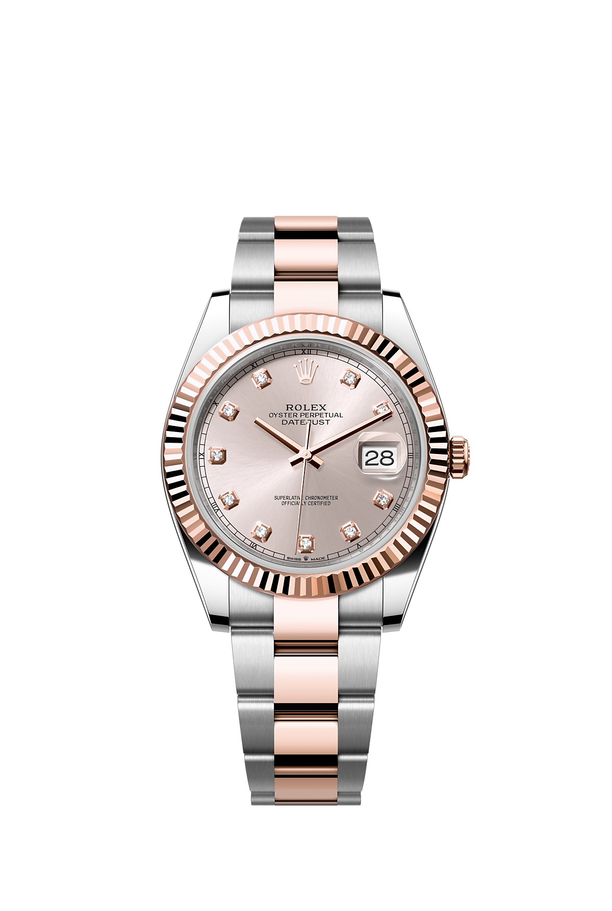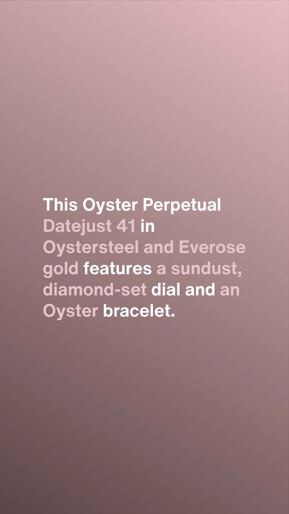 THIS OYSTER PERPETUAL DATEJUST 41 IN OYSTERSTEEL AND EVEROSE GOLD FEATURES A SUNDUST, DIAMOND-SET DIAL AND AN OYSTER BRACELET.